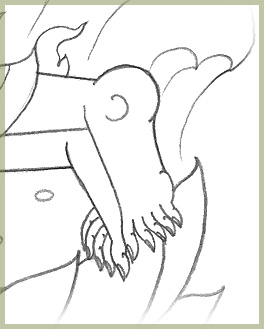 ให้สังเกต "การวาดเท้าที่วางราบซ้อนกันในท่านอน" ดังตัวอย่างนี้นะครับ