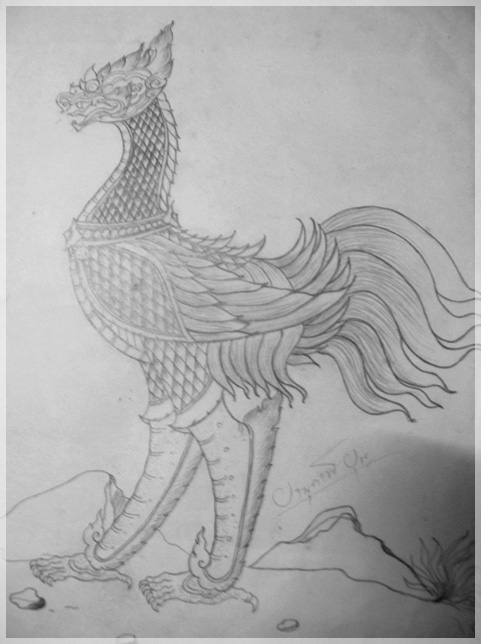 แรงบันดาลใจ : ภาพเก่าแล้วนะครับ แต่ผมชอบวาดนานแล้ว ชอบสัตว์ที่มีในวรรณคดีไทยครับ