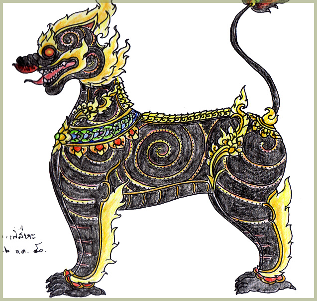 อ้อ..ผมมีภาพลายเส้นเทียบจากแบบโบราณ แถมให้หลวงพี่ดูอีกรูปด้วยครับ เป็นภาพ "กาละสีหะ พื้นดำ คู่ ๑๕ หน้า" (สะกดแบบโบราณ) เป็นภาพที่สแกนมาจากหนังสือ "สัตว์หิมพานต์ จากสมุดไทยดำของหอสมุดแห่งชาติ" (ขอบคุณพี่ยีนส์ จากเว็บ เรือนไทย.วิชาการ.คอม ที่เอื้อเฟื้อภาพสแกนครับ) ซึ่งเป็นผลงานของครูช่างสมัยปลายรัชกาลที่ ๓ มีสัดส่วนที่งดงามมาก หลวงพี่สามารถดูเทียบได้ครับ ขอให้วาดเล่นๆ ให้สนุกครับ (๒๖ พ.ค. ๒๕๕๓)