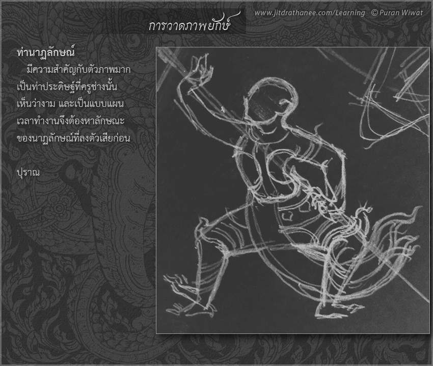 ' ซึ่งเป็นภาพชุดแรก ที่ผมได้รับความเอื้อเฟื้อจากคุณปุราณเลยนะครับ (ภาพชุดที่ ๒ เป็นบทเรียนการสอนวาดภาพตัวพระ ในอิริยาบทต่างๆ คลิกด้านบนเลยครับ) ภาพในบทเรียนนี้มีทั้งหมด