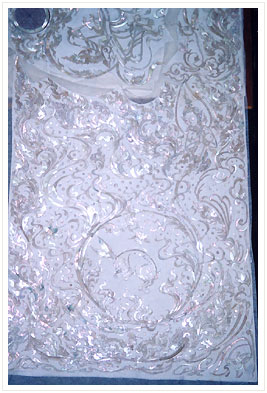 When an artisen was cut the pearl shell into pieces, the next processes is to bring each of them to put it on the cabinet which an highly skill in use a pincers lay over the pattern piece by piece.