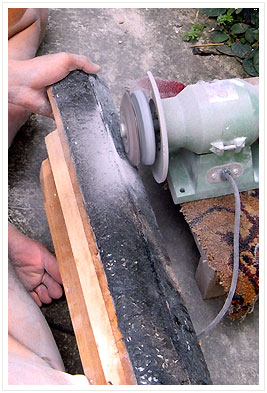 ภาพที่ ๑๙ ช่างต้องขัดลายด้วยเครื่องขัดก่อน จากนั้นจึงจะขัดเก็บรายละเอียดอีกครั้ง ด้วยกระดาษทราย |